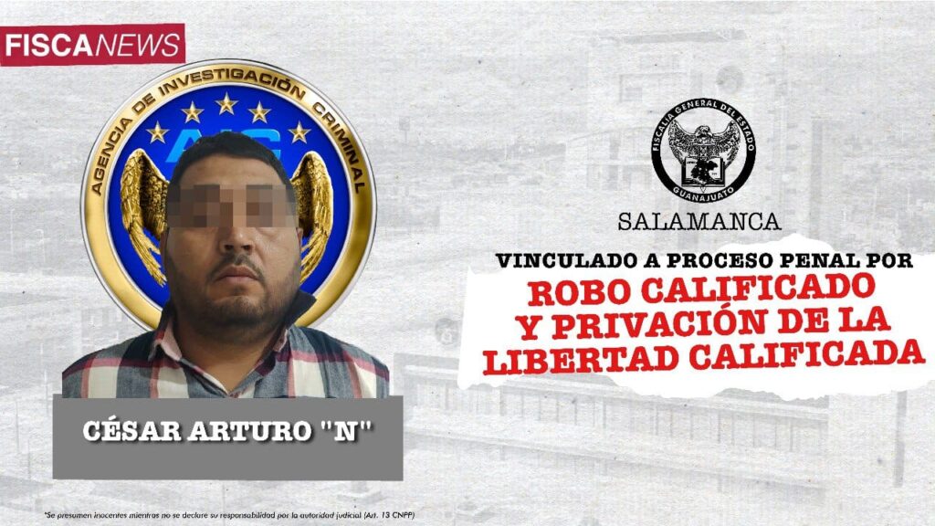 Salamanca, Gto. – Ya está en prisión, vinculado a proceso penal por los delitos de robo calificado y privación de la libertad calificada, el presunto asaltante que el pasado lunes 21 de agosto del año en curso, despojó a una pareja de su camioneta en la carretera Valle de Santiago-Salamanca.